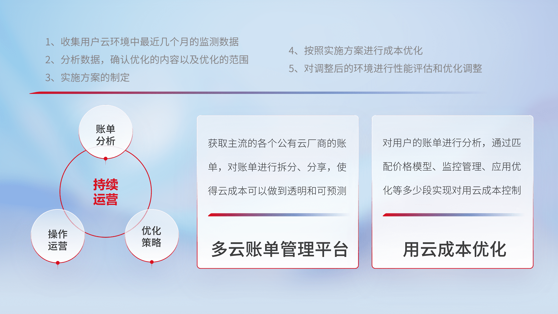 运用智能化工具分析云资源,,,,提供日常费用可视化工具,,,,自动账单拆分,,,,成本优化云上费用,,,降本增效。。。