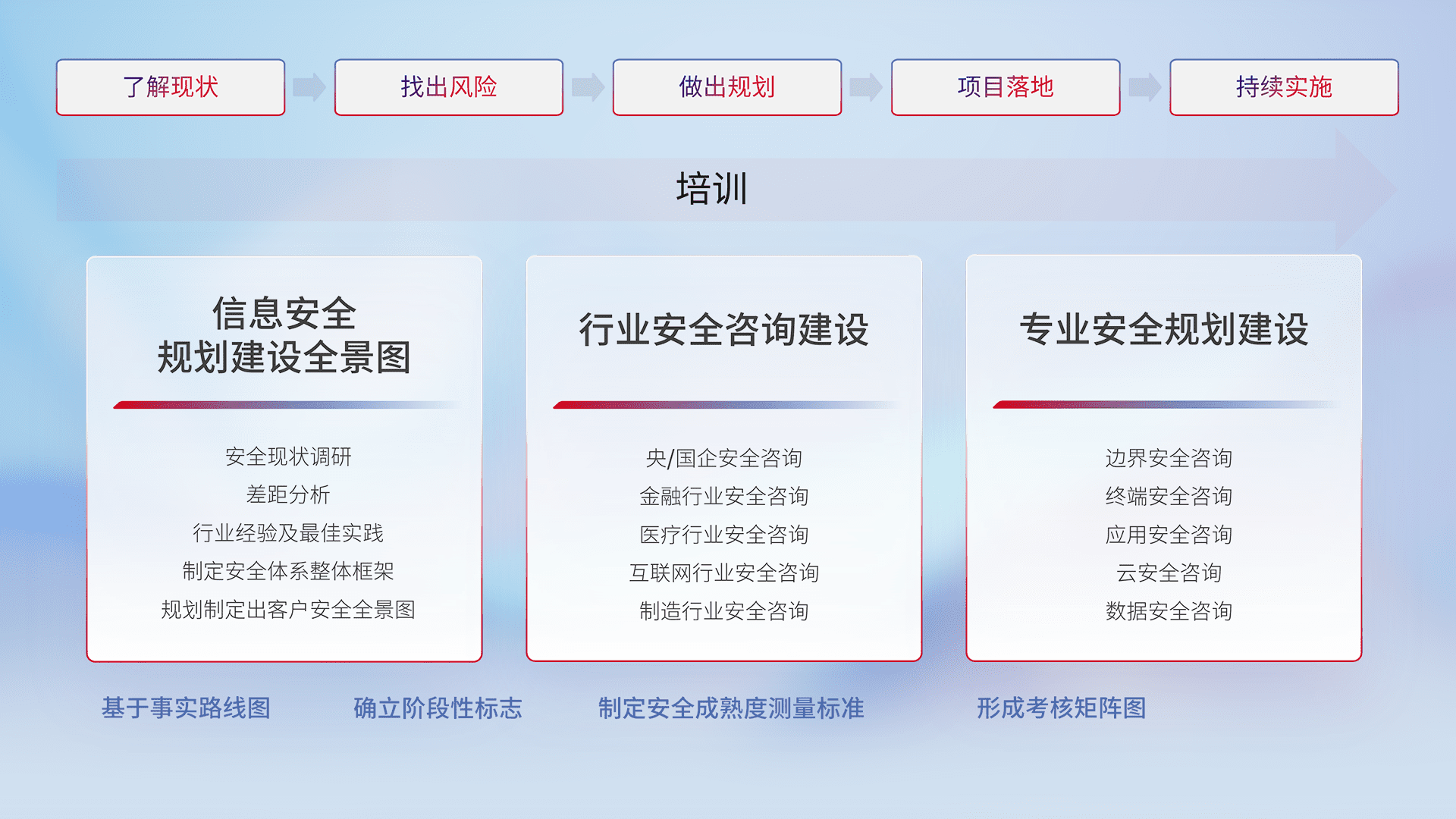 梳理客户信息安全现状调研、、、差距分析结果,,,结合行业先进经验及最佳实践,,制订客户的信息安全管控体系总结架构,,最终形成一个完整的客户信息安全规划与建设的全景图。。。。